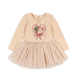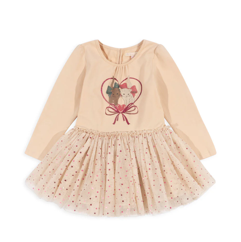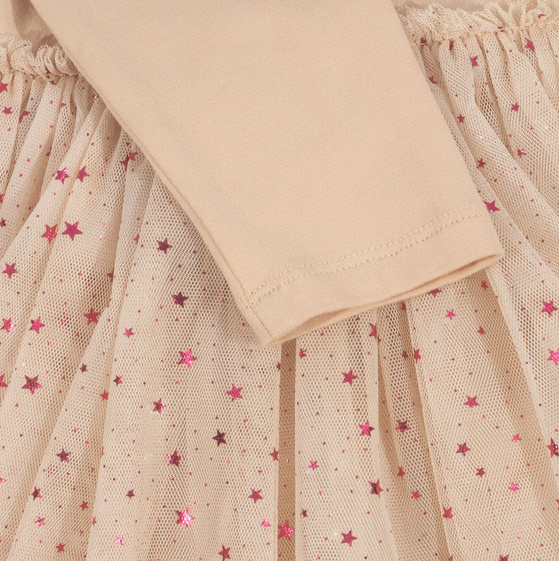 Long-sleeved ballerina dress with puff sleeves and a voluminous tulle skirt.