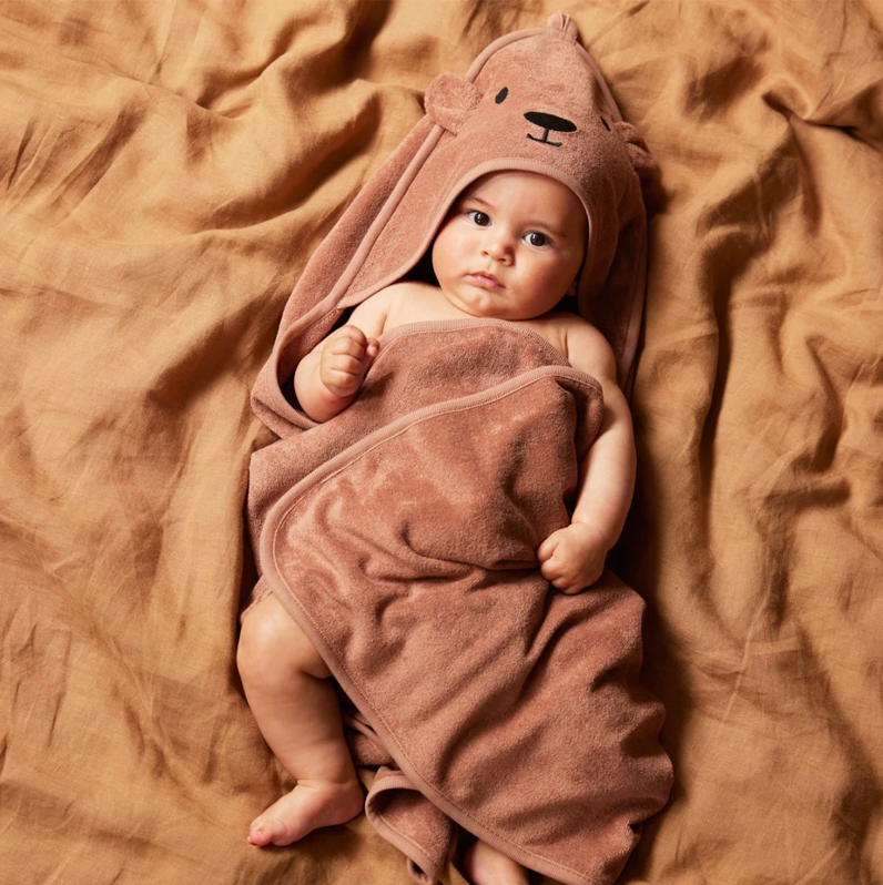 Wrap baby up nice and snug after bath time with this soft and luxurious hooded towel. The cosy hood features adorable bear ears and cotton embroidery detailing.