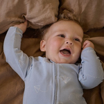 Our Dreamlands suit features a full length double ended zip for easy dressing and night time changes, with enclosed feet to keep little one cosy overnight. In our certified organic cotton waffle, a textured knit fabric that supports heat retention to keep little one snuggly and warm, whilst remaining breathable.