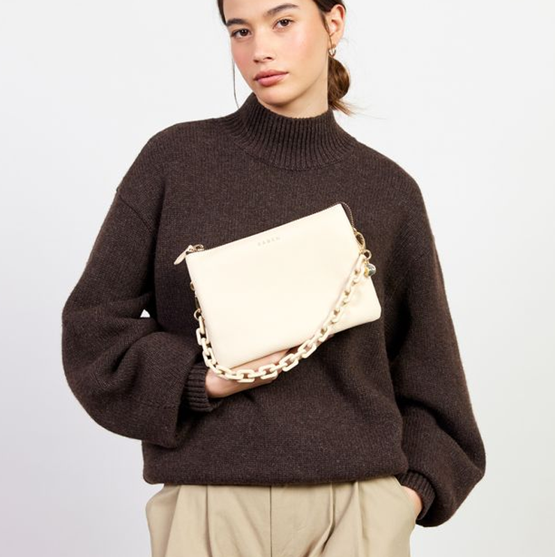 Transform any bag with one of our feature handles. Drape across the front of your Saben piece as bag candy or use the small handle to add some fun to clutches.