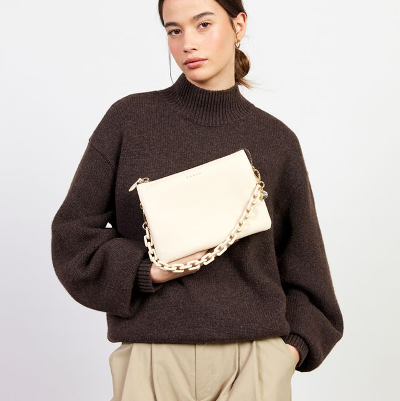 With all the over-achievement of Tilly, but bigger (older and wiser) and complete with adjustable/detachable shoulder strap you have a wonder-product, Tilly's Big Sis! She is the perfect partner from desk to dinner, workday to holiday; the ultimate hybrid of style and function. With her zip opening, five compartments and inner zip pocket she keeps your prettiest pennies (and whatever else you fancy) locked and lovely.