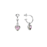 These sterling silver sleeper earrings feature heart-cut mystic quartz pendants secured in sculptural claw settings.
