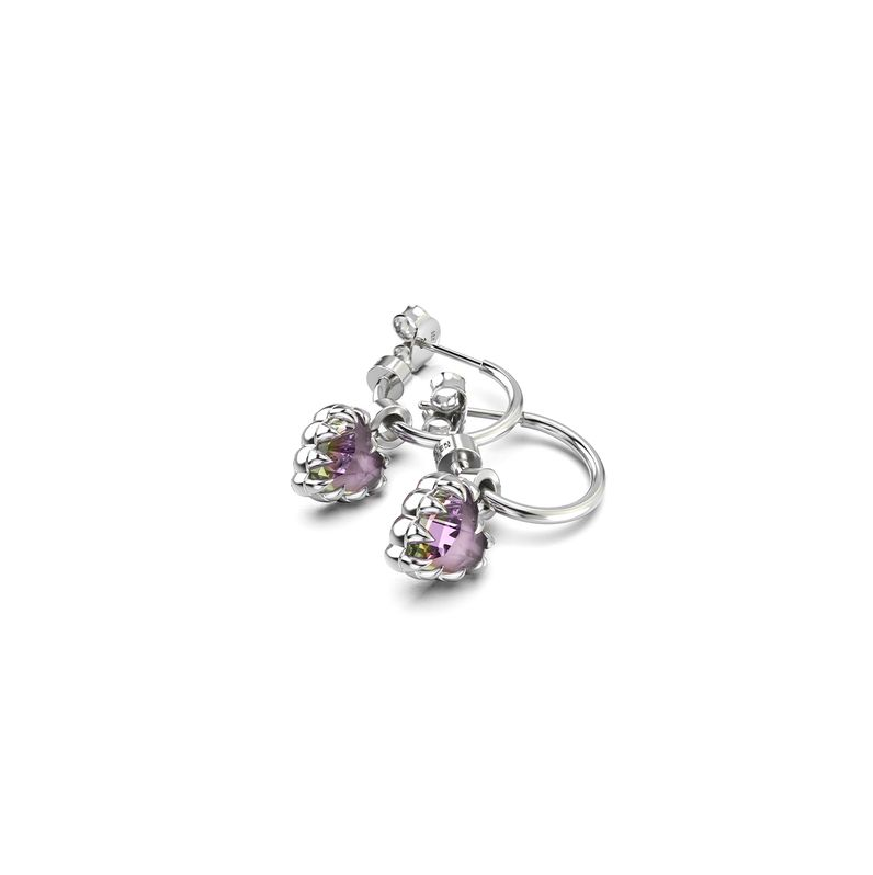 Suspended from polished hoop sleepers with post and butterfly closure, the colour-treated quartz delivers tonal variation and movement.