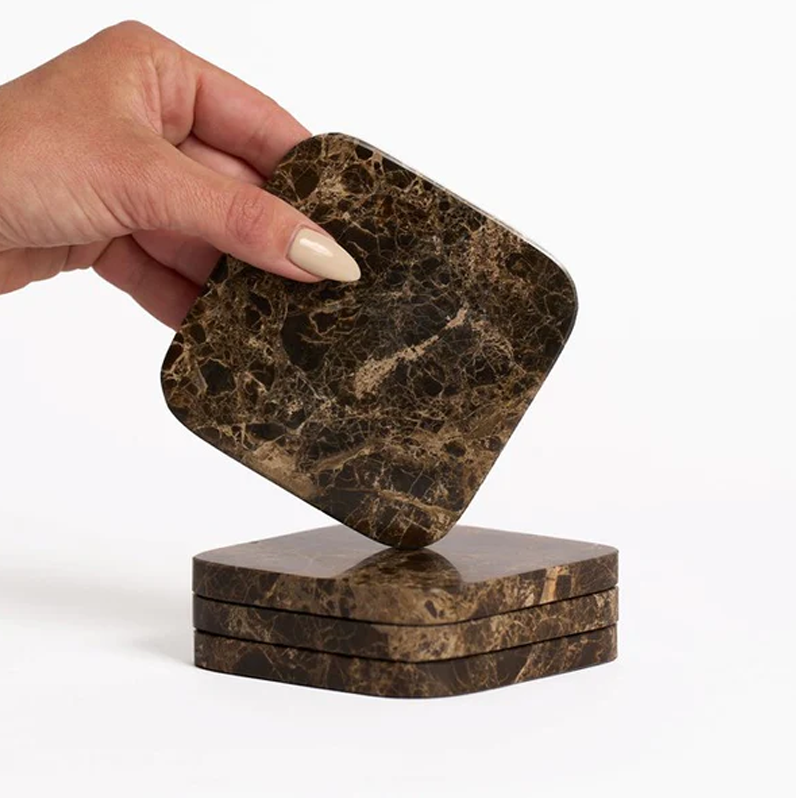 Stone Coasters - Dark Marble - 4 Pack
