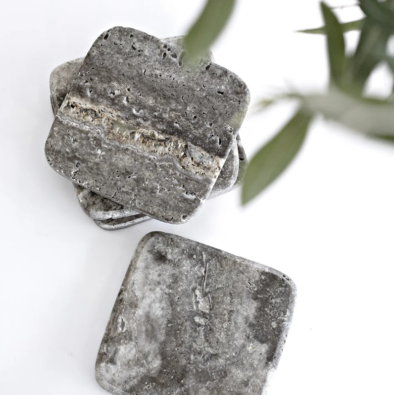 Stone Coasters - Grey Travertine - 4 Pack